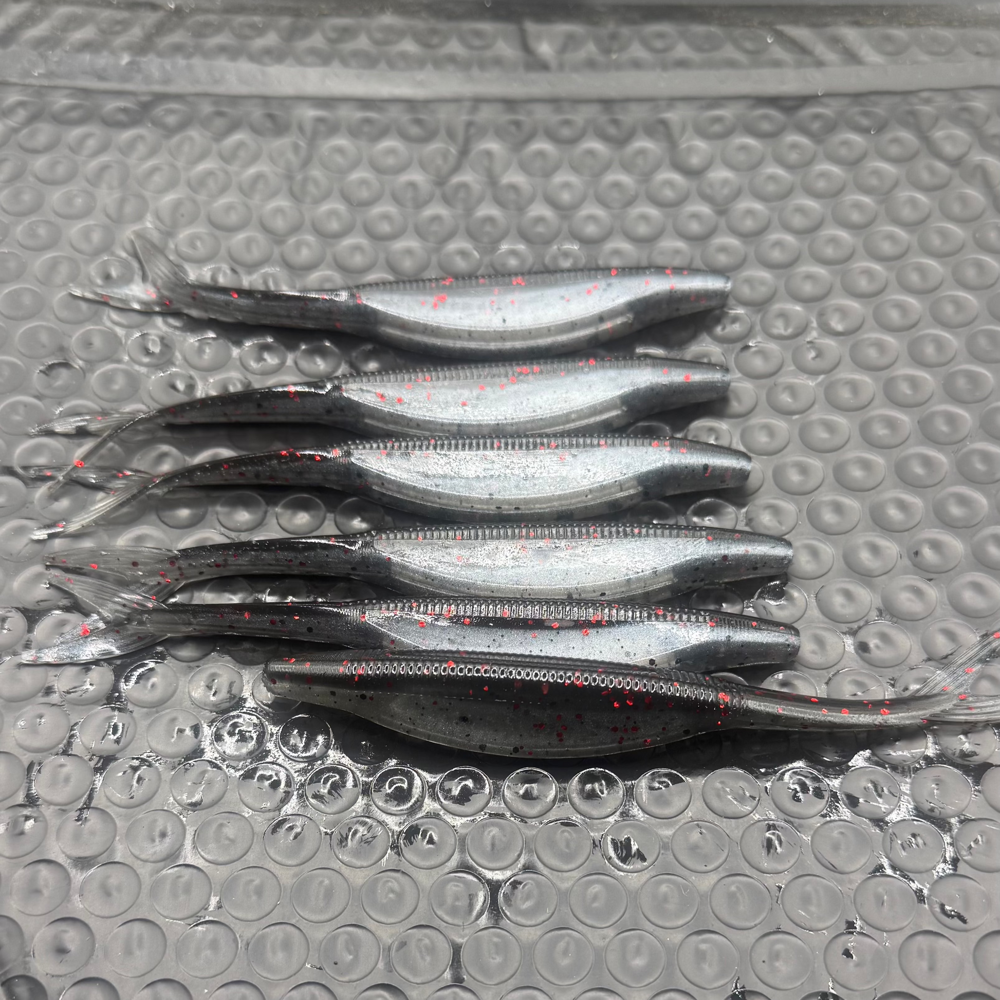 ⚡️ Metallic silver with red flake = wounded baitfish flash